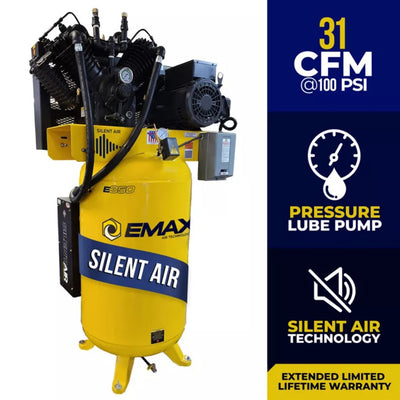 EMAX 7.5 HP Air Compressor 1 Phase 80 Gallon Vertical Tank Silent Air ES07V080V1