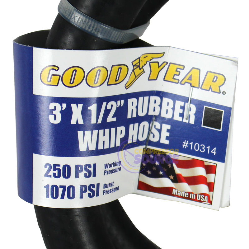 Goodyear 3' x 1/2" Rubber Air Hose Whip 250 PSI USA Made 1/2" NPT 10314