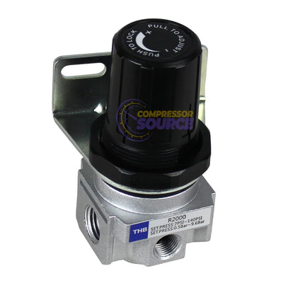 1/4" Industrial Air Compressor Pressure Regulator with Gauge and Wall Mounting Bracket