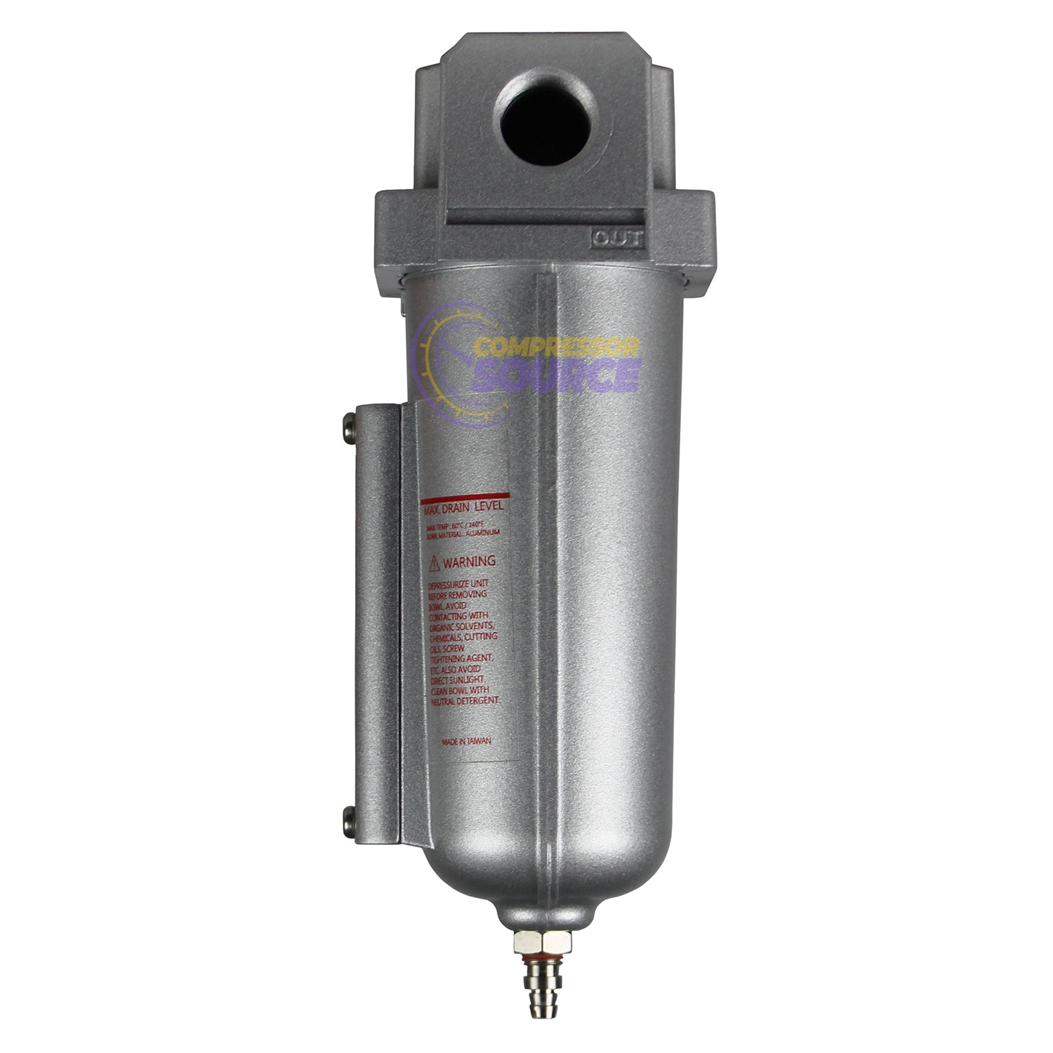 Equipped with a twist-style ball valve drain, maintenance is quick and hassle-free. This unit includes a wall mounting bracket to securely mount this moisture filter. For proper operation, the filter must be mounted vertically.