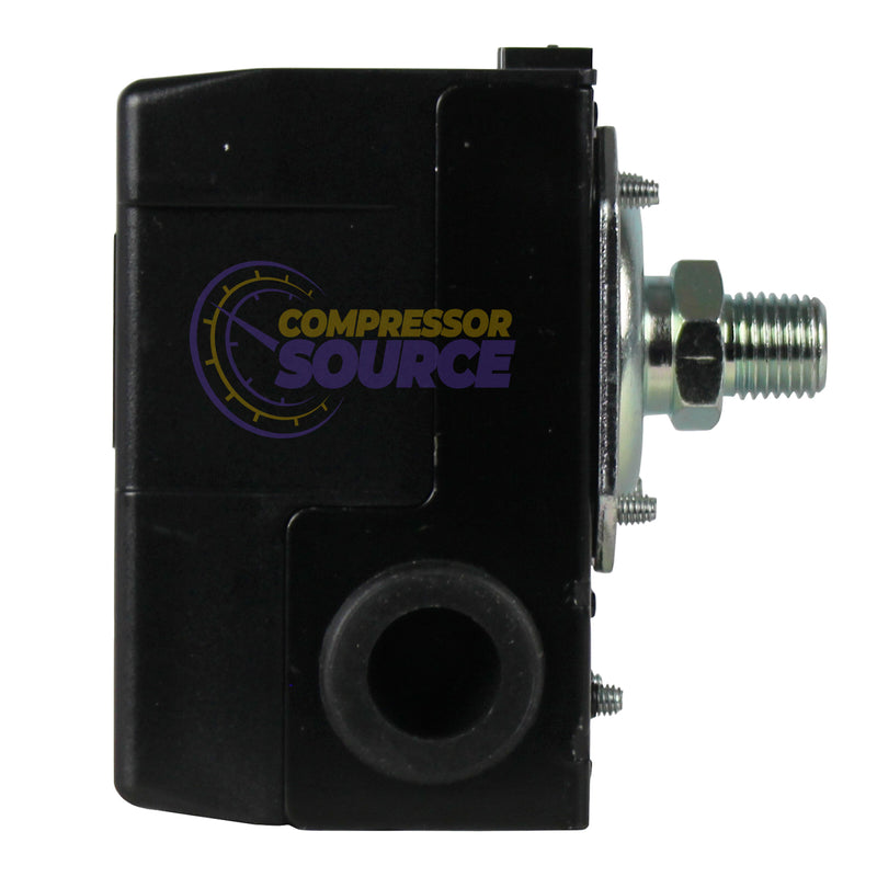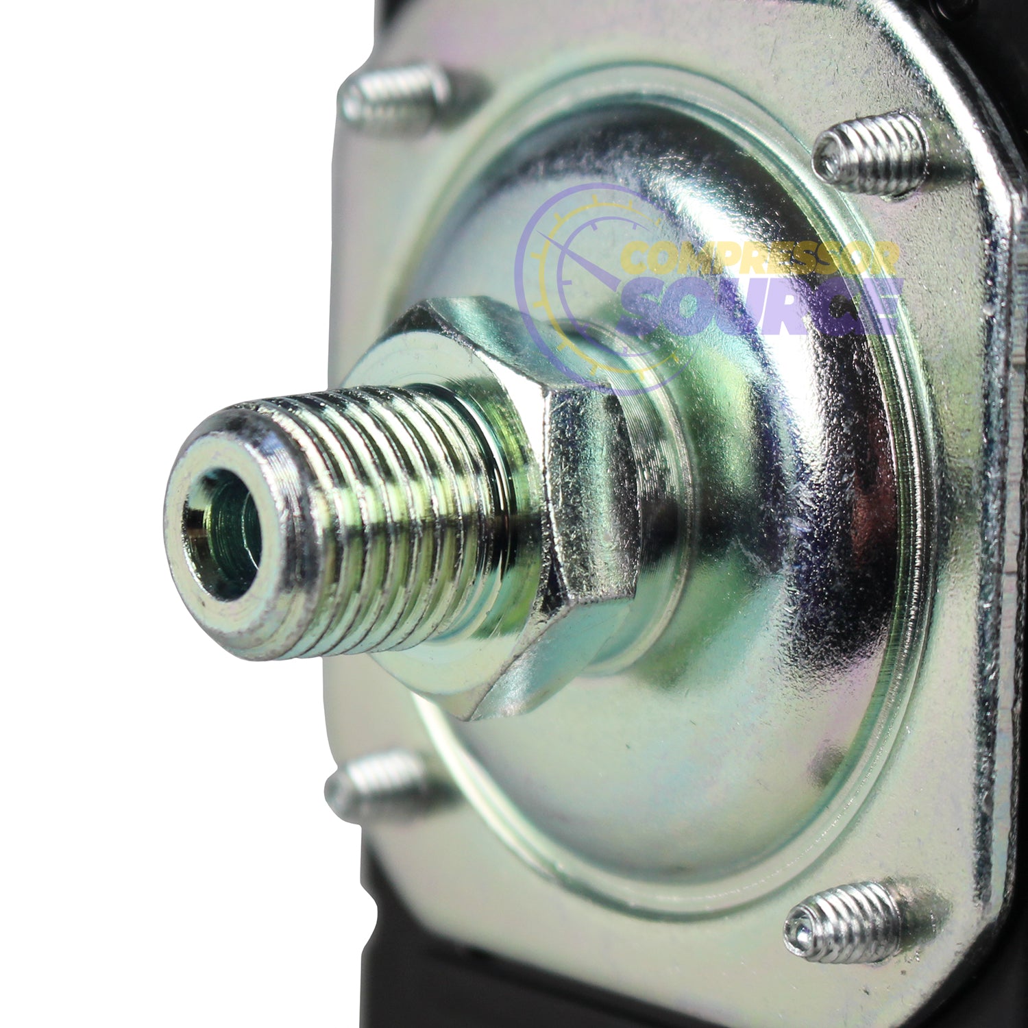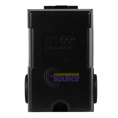 This is a Lefoo LF10A-M1N air compressor pressure switch, factory set to turn on at 110 PSI and off at 150 PSI, with an adjustable differential range between 35–50 PSI. Built for dependable performance, this Single-port pressure switch is UL Listed, CSA Certified, and rated for up to 26 Amps.