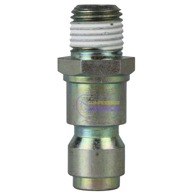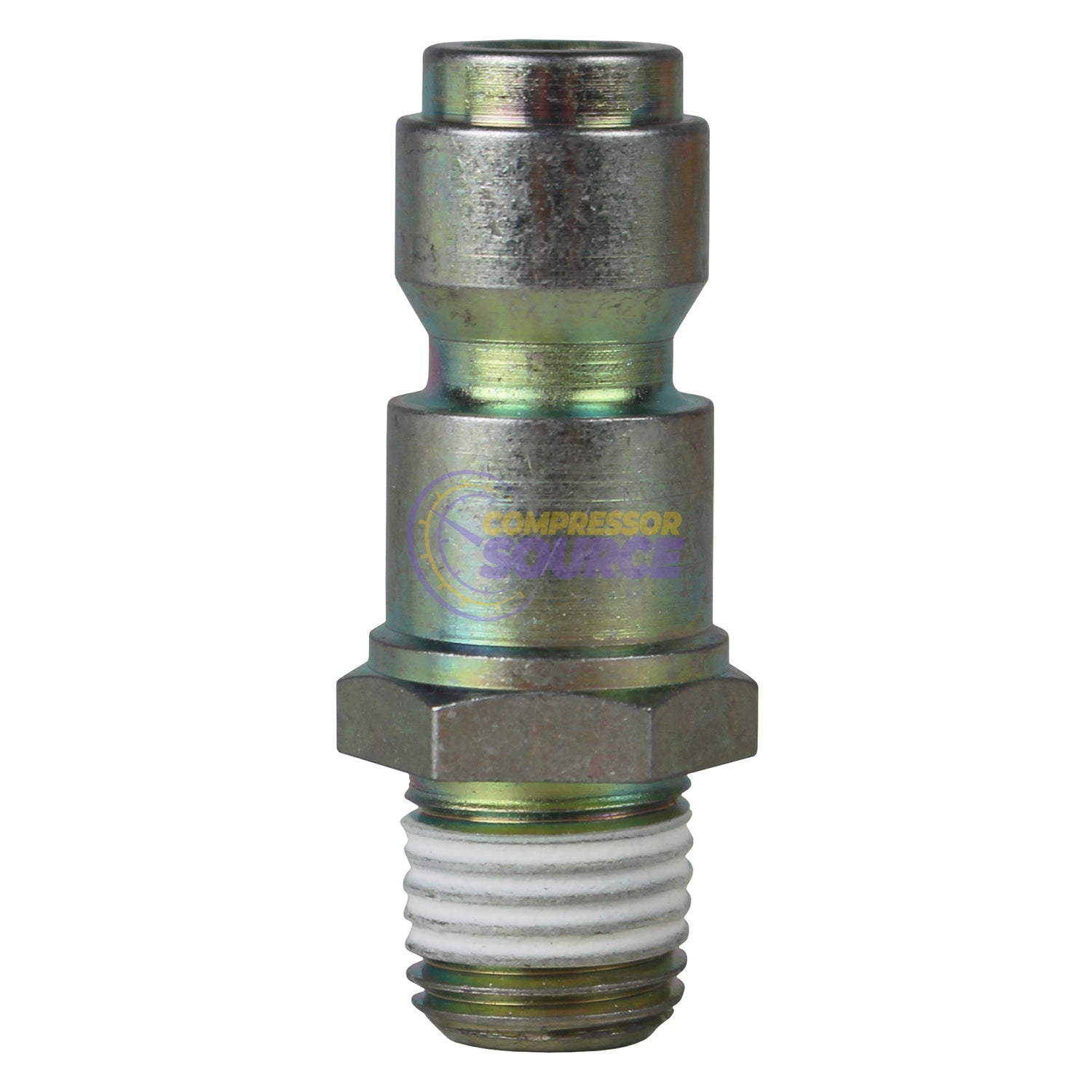 Steel 1/4" male NPT coupler plug by Prevost. This coupler plug is Truflate style, so it is only compatible with couplers that accept a 3/8" body size Truflate-style plug. Made of corrosion-proof treated steel, this is one of the most durable, solid steel plugs you can find on the market. A quality plug can increase the life of your couplers, so don't take a chance with a cheaper product!