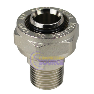 This listing is for a brand new MaxLINE 3/4" piping by 1/2" male NPT straight adaptor fitting (Part number M8005). This MaxLINE union is specifically designed for the MaxLINE 3/4" tubing made by RAPIDAIR and is great for adding regulators, filters, and other equipment in the middle of the air line that need a 1/2" male NPT hook up, also if your trying to hook something up that is not 1/2" you can always use a reducer to connect this fitting if needed. This fitting is made of solid brass and has a double o-ring seal for a no leak connection. Also is has split ring connections for easy disassembly if needed. Rated for 175 PSI working pressure.