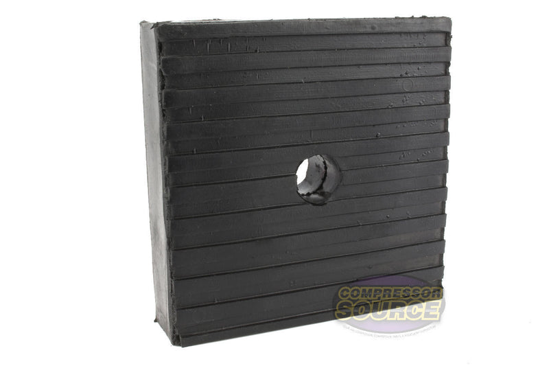4" industrial solid rubber anti vibration pad. This is a high quality anti vibration pad that measures 4" square and 1" thick. This solid rubber anti vibration pad features an anti skid top and bottom surface. This vibration pad comes with a 5/8" hole in the center of the pad to anchor through. This pad is perfect for use with air compressors,HVAC, and all sorts of heavy duty equipment. Using this vibration pad will cut down on operating stress, equipment wear, and noise with your machinery.