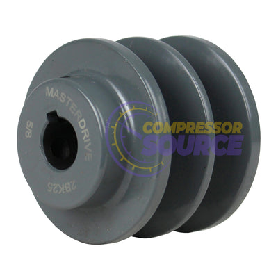 Masterdrive dual groove 2.5" bored to size pulley for B section or 5L belts. This is a high-quality cast iron pulley and is designed and bored to fit a 5/8" keyed shaft and features dual set screws to ensure a completely secure fitting. Most pulleys that are similar to this only have one set screw which makes them less reliable in many working conditions. This pulley is designed to be used with B Belts (also known as 5L Belts). You can use A Belts with this pulley; however, they will sit deeper in the grooves and reduce your pulley size.