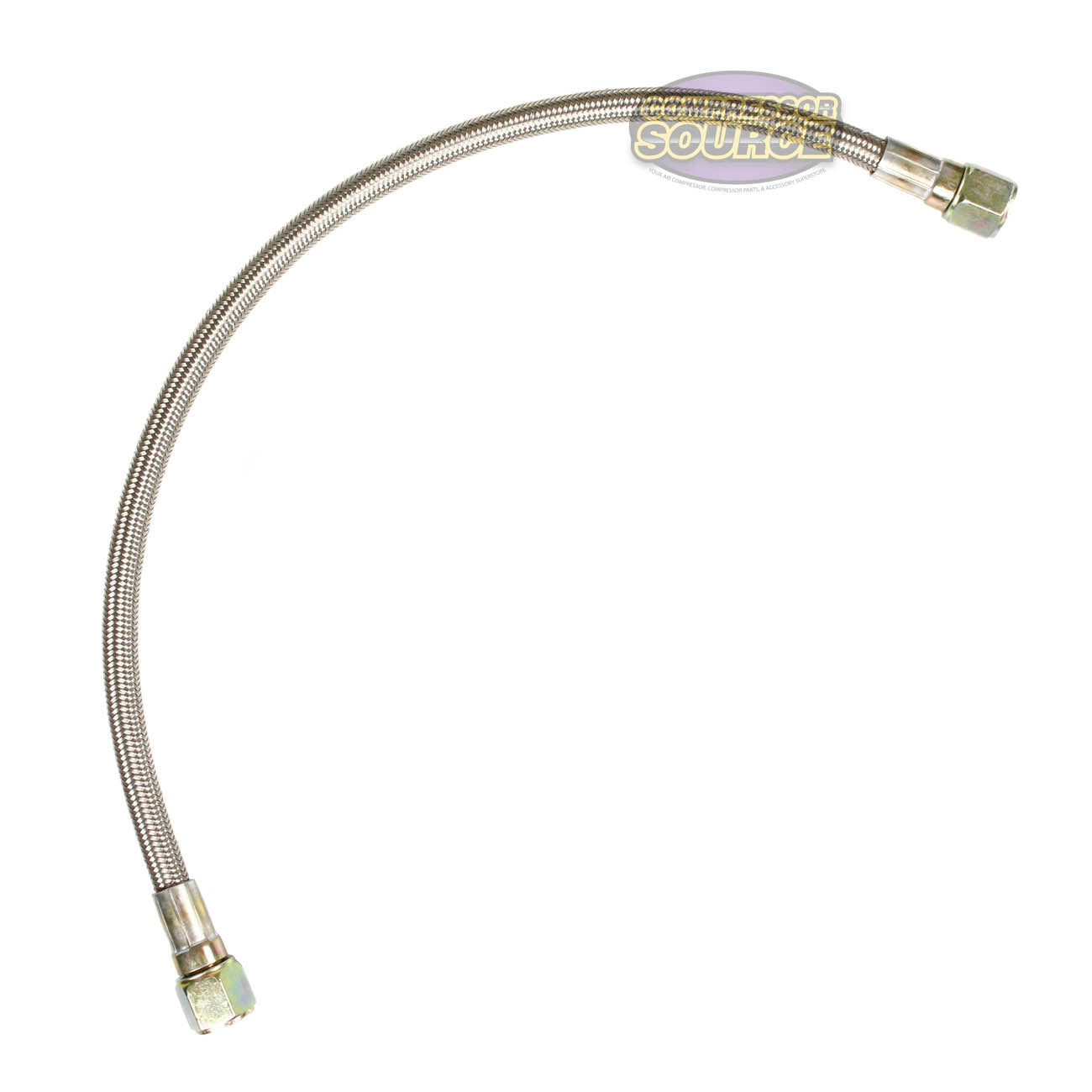 Brand new universal fit replacement stainless steel air supply line. This is a stainless steel braided air line that goes from the head of the compressor into the check valve mounted to the tank. This is the main line of airflow from your compressor head to the tank. Please see below for more details and specifications.