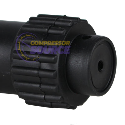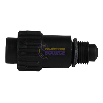 Brand new replacement crankcase oil fill breather vent cap. This is a generic replacement part for common air compressor pumps. This oil breather cap measures approximately 2-3/8" tall x 1" in diameter at the widest point, and has 3/8" straight threads (measures about 5/8" outside diameter). An O-ring seal helps keep this breather sealed without leaks.