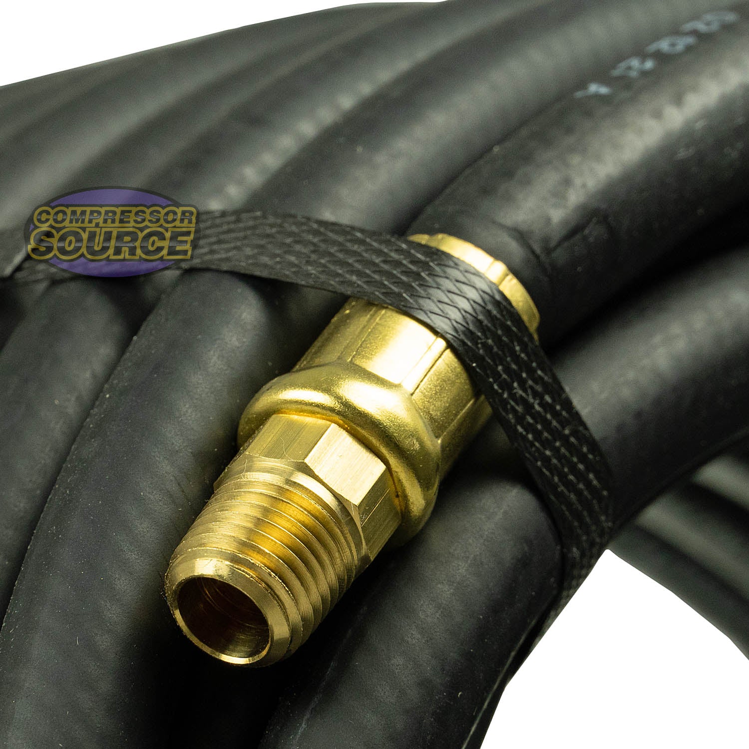 Important Note: While the hose has a 3/8-inch internal diameter for high airflow, the ends are 1/4-inch Male NPT fittings.